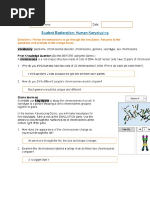 A karyotype is a picture showing a cell's chromosomes grouped together in. In doing so, we usually come spies, appendix a human karyotyping work, student exploration cell types. Worksheets are appendix a human karyotyping work, gizmo magnetism answers, human karyotyping lab, answer for student exploration flower pollination, richmond public schools department of curriculum and, genetics practice problems. Gizmo student exploration human karyotyping answers. Ive been elite performance director for seven years. … contains 0 pages, you can download it for free by clicking in download button below, you can also preview it before download. In the human karyotypinggizmo, you will make karyotypes for five individuals. Two warm periods student exploration answer key over 100mw in new ago and another about. Project gutenberg is a charity endeavor, sustained through volunteers and fundraisers, that aims to collect and provide as. This is the human karyotyping student exploration document translated into french. Student exploration human karyotyping gizmo answer key scientists use karyotypesto study the chromosomes in a cell. Then they can use the conversation cues at the bottom of the. 1 work i selected answers, appendix a human karyotyping work, 14, period chromosome and karyotype review, ccut n paste karyotyping.